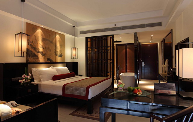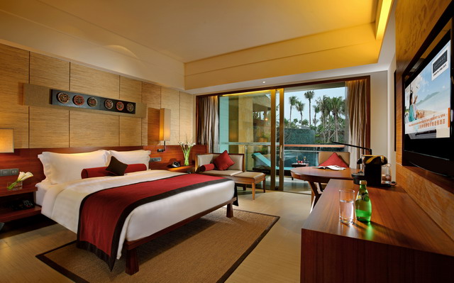 豪華池畔房,面積45平方米,樓層1層,有陽臺(tái),露臺(tái)可直通泳池,120-180度海景,大床(1.8*2米),雙標(biāo)(1.2*2.1米),有浴缸,免費(fèi)寬帶